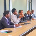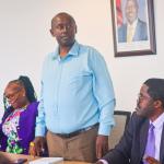 Principal Secretary accompanied by Heads of Departments receive KJET PIU team